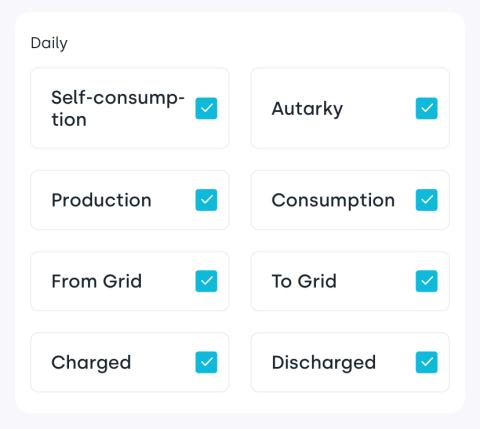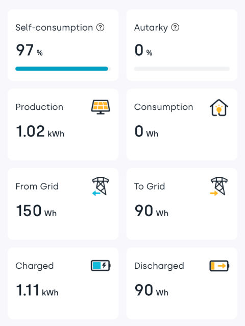 | Autarky | (Load from PV + Load from Battery) / Total consumption - shows how much of your home’s electricity came from your own energy. |