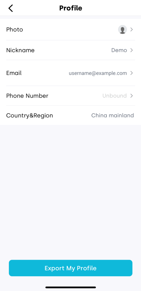 Tap Profile to enter the detailed account page where you can update your profile picture, change your username, and update your bound email or phone number.