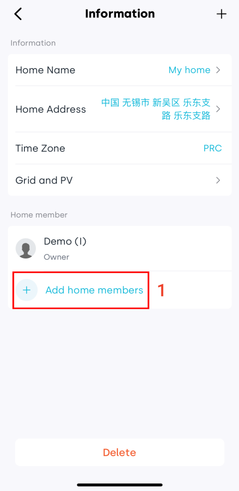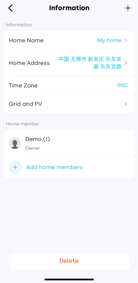 At the bottom of the home management page, tap Delete. After confirmation, the home will be removed.