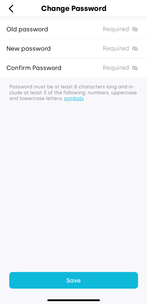 Tap Change Password, then follow the instructions to enter your current and new passwords. After saving successfully, the system will automatically redirect you to the login page, where you can sign in again using the new password.
