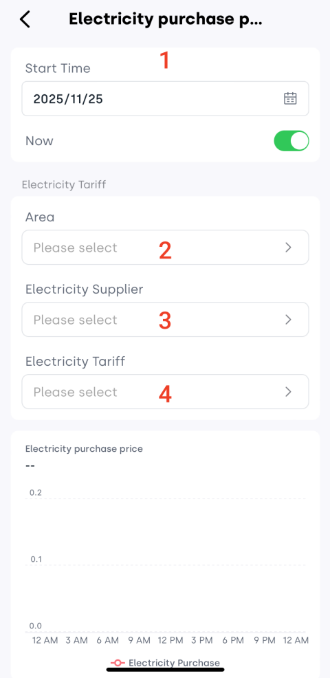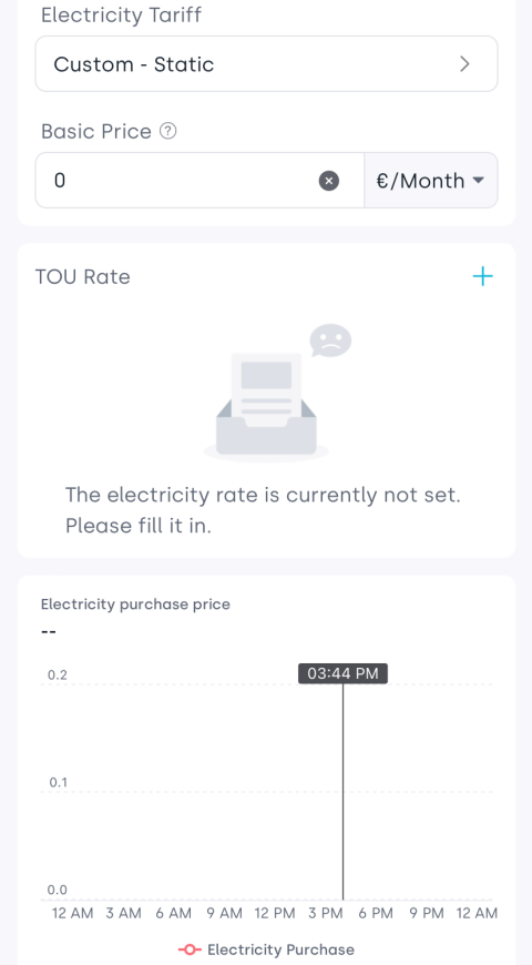 Tap + Add Electricity Price to create a new purchase or selling price plan.