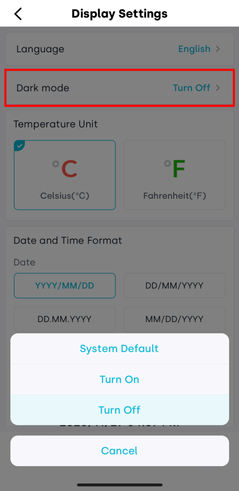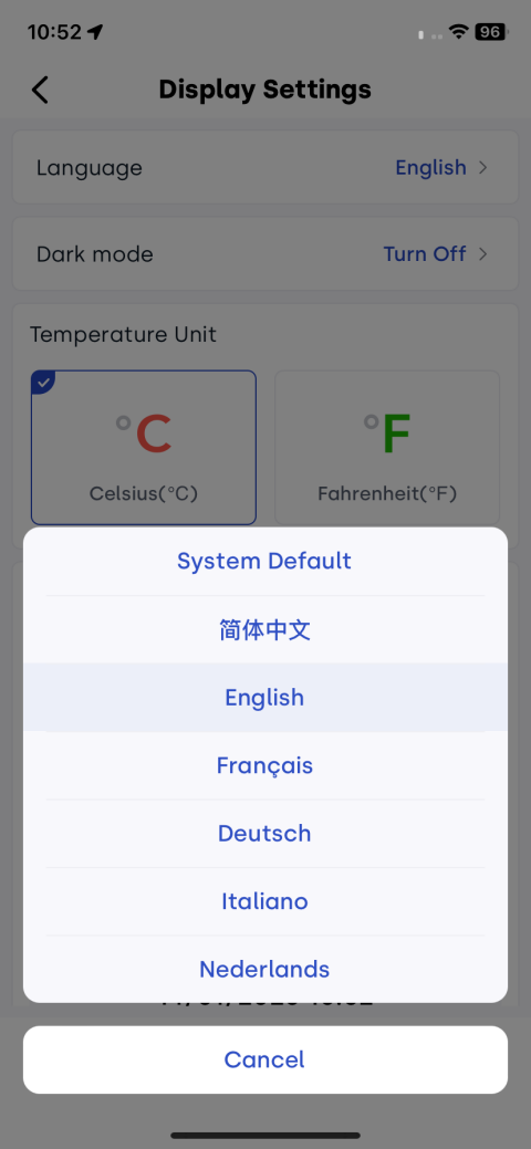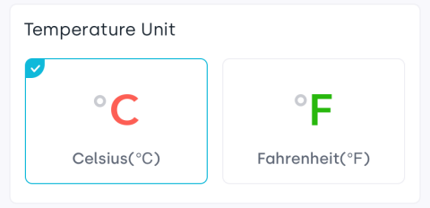 Choose your preferred temperature unit: Celsius (℃) or Fahrenheit (℉).
