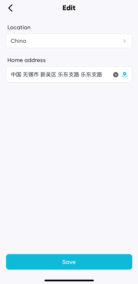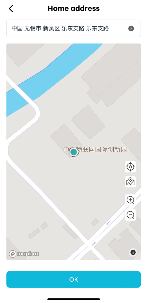 - Home Address: The app auto-fills an approximate area; you may tap the icon next to the address bar to re-locate on the Mapbox map.