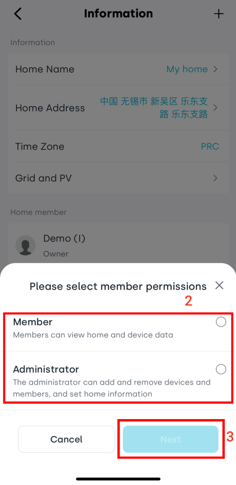 Permission Description Member View home and device data only. Administrator Can add and remove devices and members, set home information. -