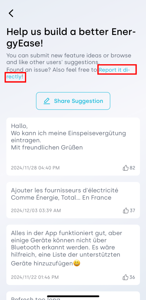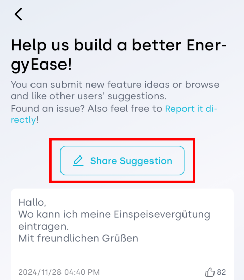 Share suggestions: Tap Share Suggestion to provide your ideas for improvements or new features.