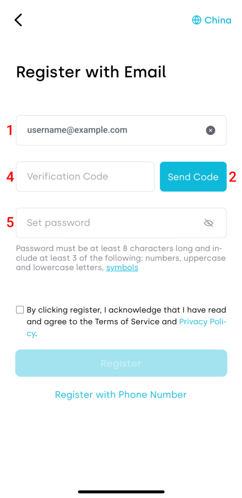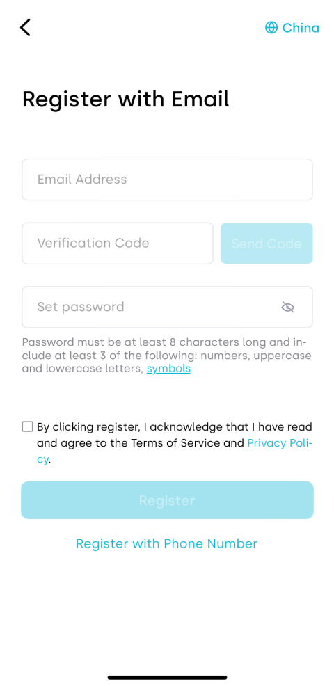 Email registration is available for all users. Phone registration is available for users in Mainland China.