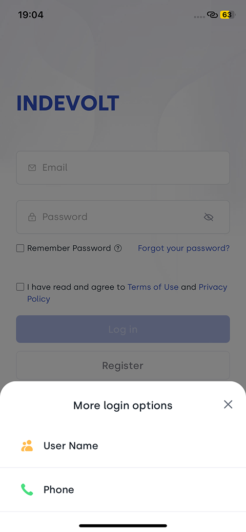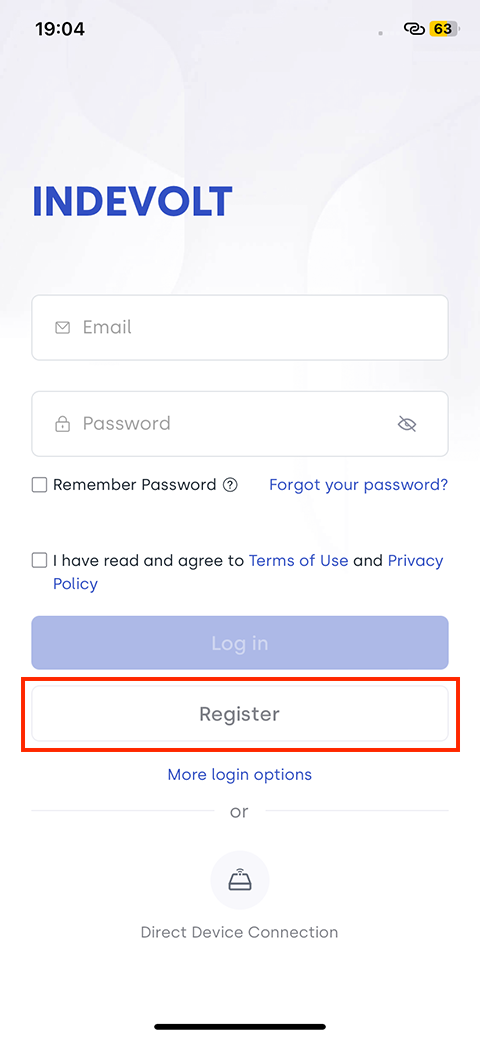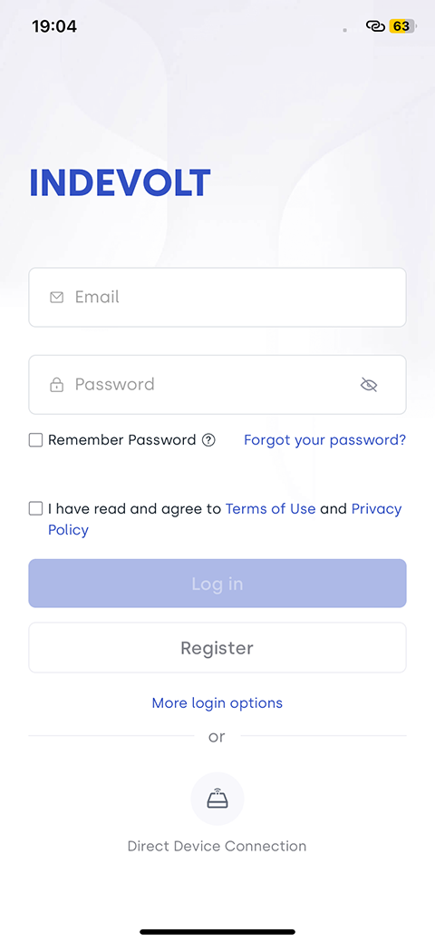After installing the INDEVOLT App, open it to enter the login page.