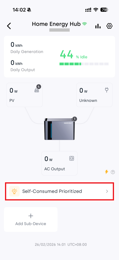 In Self-Consumed Prioritized mode, the Indevolt Micro Energy Storage system dynamically adjusts charging and discharging power based on household energy demand.