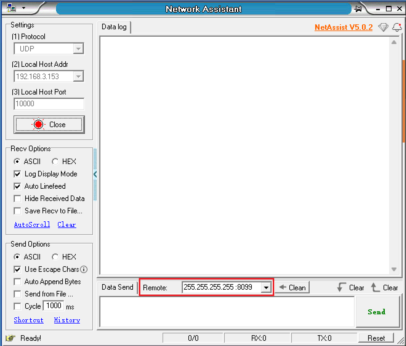 (7) Configure Remote with broadcast address and port: 255.255.255.255:8099.