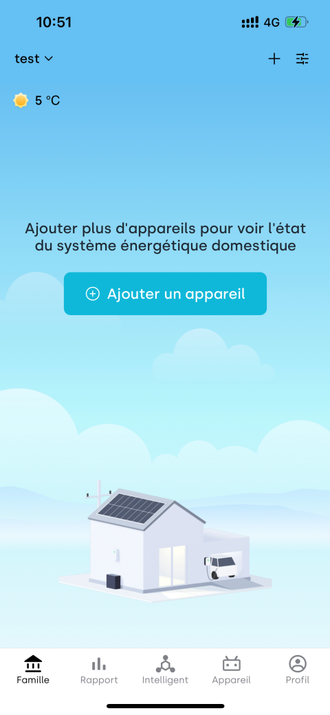 Lorsque vous vous connectez pour la première fois, l'application créera automatiquement une maison par défaut, utilisée pour gérer tous vos appareils.