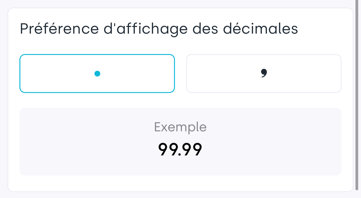 Choisissez votre séparateur décimal préféré : point ou virgule.