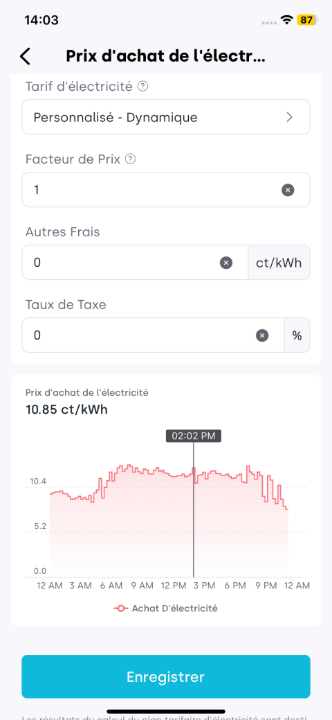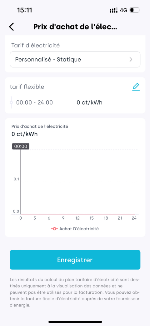 Ces paramètres servent uniquement à la visualisation et estimation dans l’application. La facturation réelle dépend des données officielles du fournisseur.