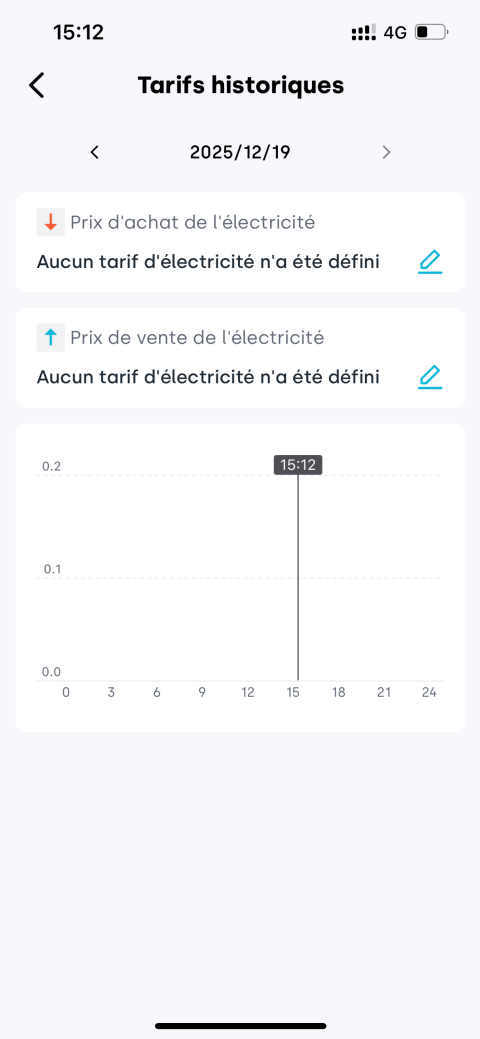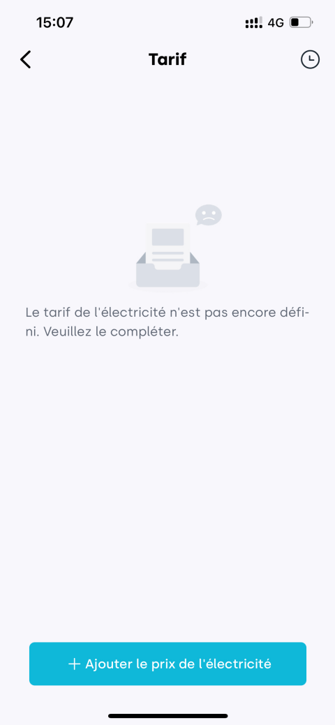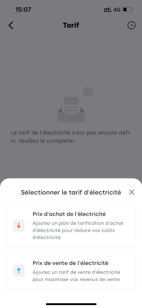 Touchez Tarif pour accéder à la gestion des prix de l’électricité.