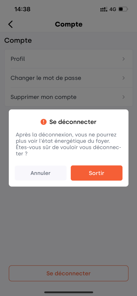 Touchez Se déconnecter pour quitter votre compte en toute sécurité. Le système retournera à la page de connexion.