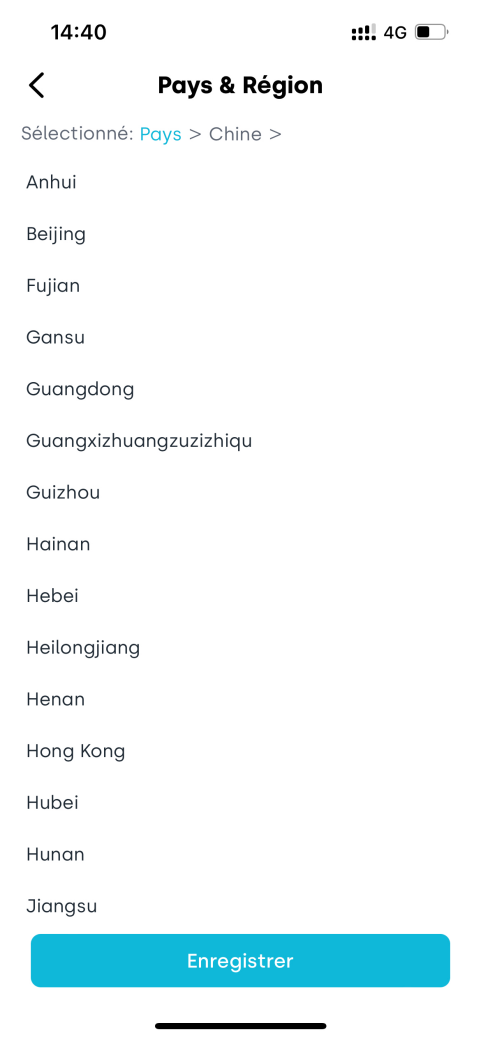 - Localisation : l’application détecte automatiquement votre pays ; vous pouvez également le sélectionner manuellement.