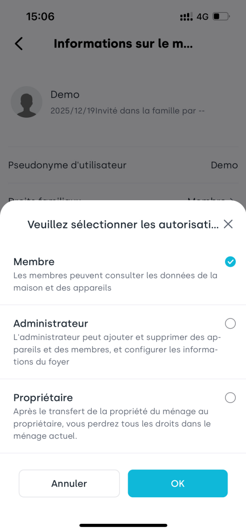 | Administrateur | Peut ajouter/supprimer des appareils et membres, configurer la maison. |