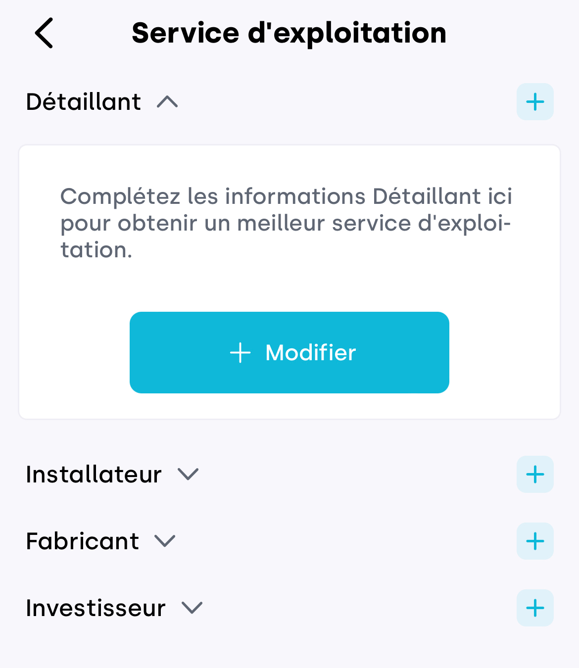 Pour faciliter la maintenance, vous pouvez ajouter et gérer des fournisseurs de services (revendeurs, installateurs) via Services d’exploitation. Après autorisation, le fournisseur peut consulter les informations de base sur vos appareils pour offrir un support plus précis.