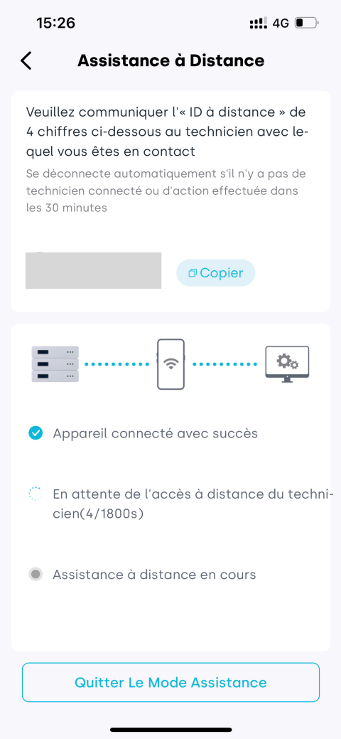 - Le système génère un ID à distance. Fournissez cet ID au technicien pour le diagnostic.