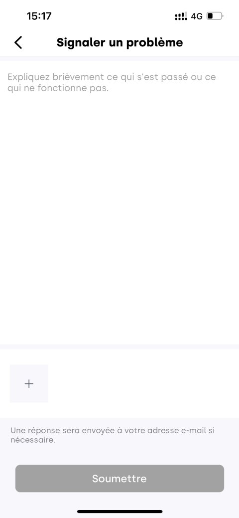 Signaler un problème : Touchez Signaler directement i'incident, décrivez le problème et soumettez-le.