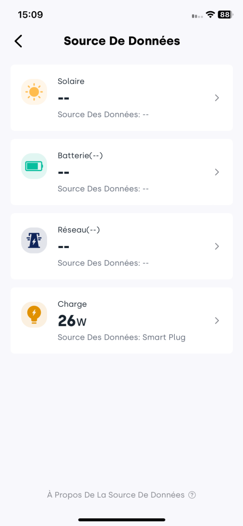Grâce aux paramètres de source de données, vous pouvez définir les sources utilisées pour les statistiques énergétiques de la famille, afin d’améliorer la précision et la fiabilité des résultats.