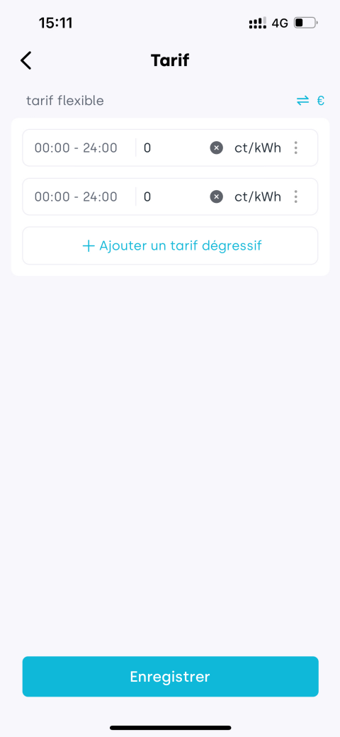 Touchez + Ajouter le prix de l’électricité pour créer un nouveau plan de prix d’achat ou de vente.