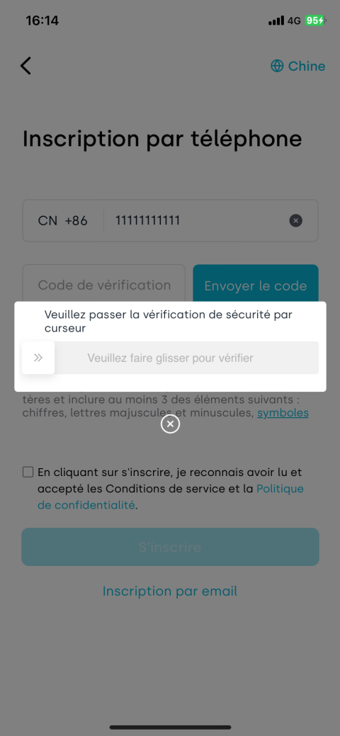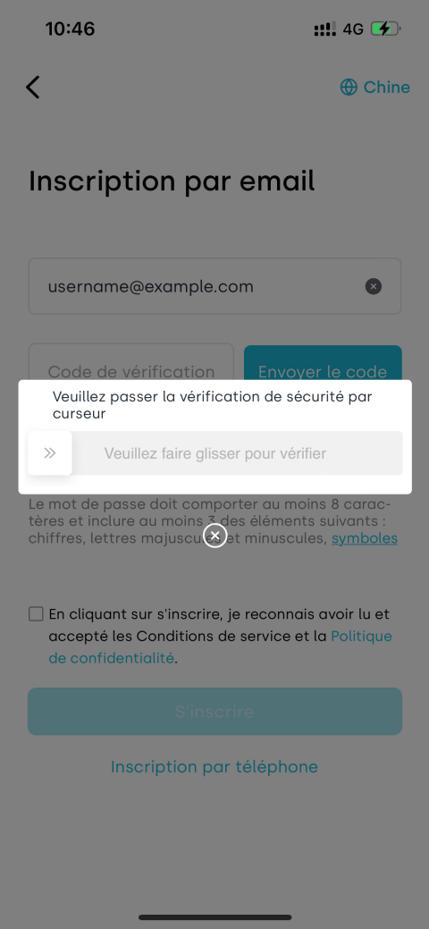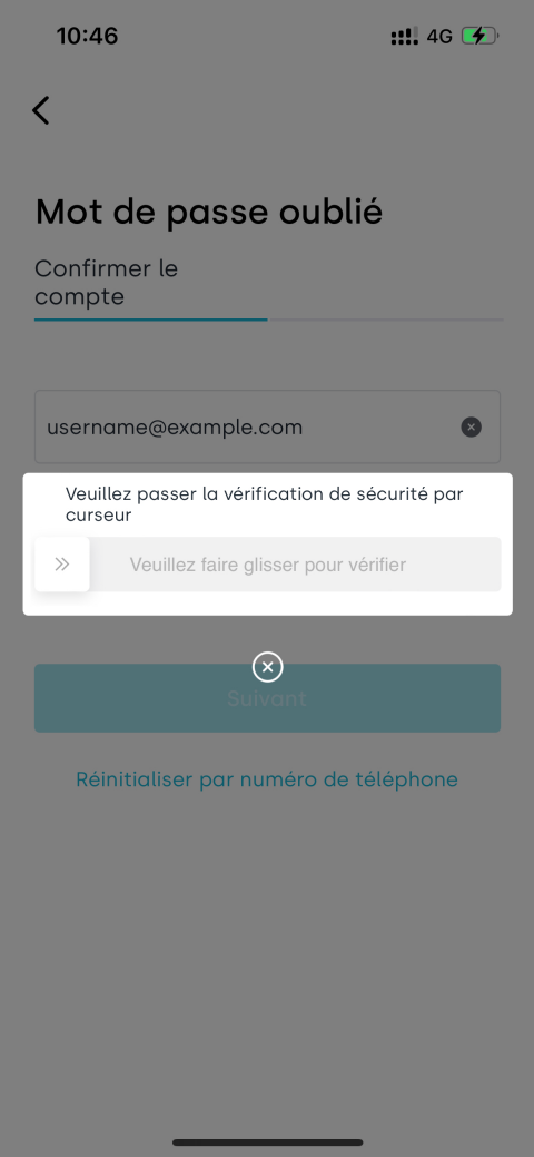 Faites glisser pour vérifier votre email/numéro de téléphone.