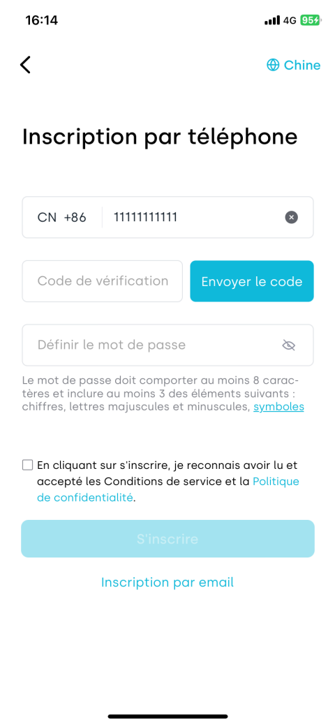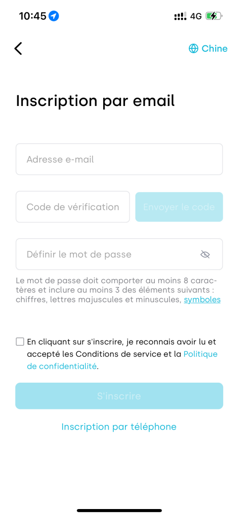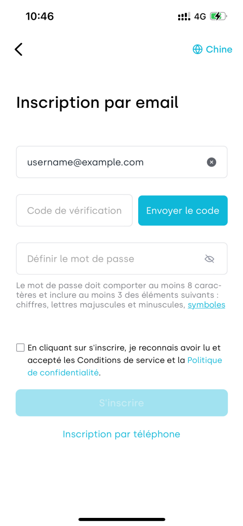 L'inscription par email est disponible pour tous les utilisateurs. L'inscription par téléphone est disponible pour les utilisateurs en Chine continentale.