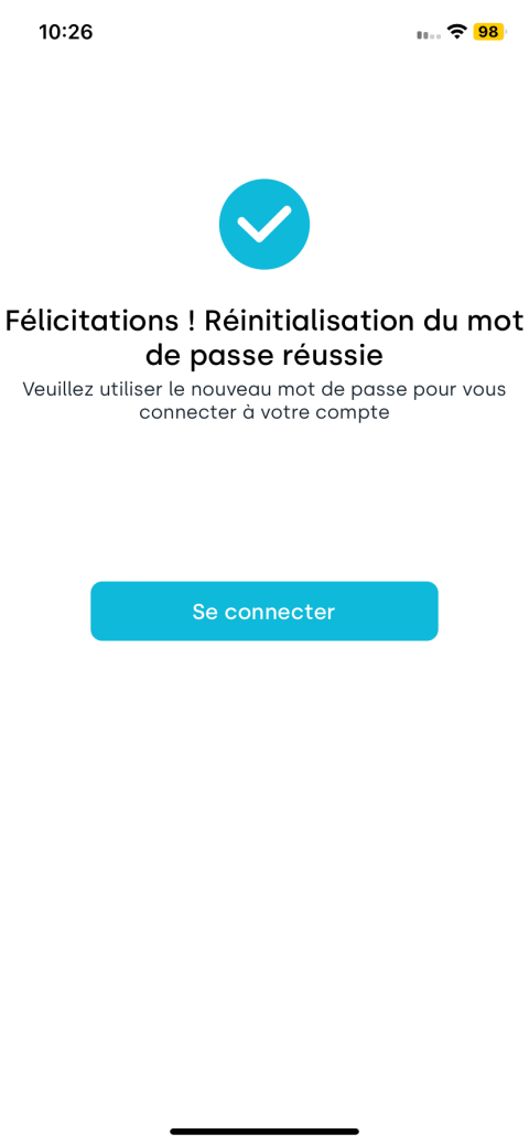 Une fois votre mot de passe réinitialisé avec succès, appuyez sur Se connecter pour revenir à la page de connexion et vous connecter à nouveau.