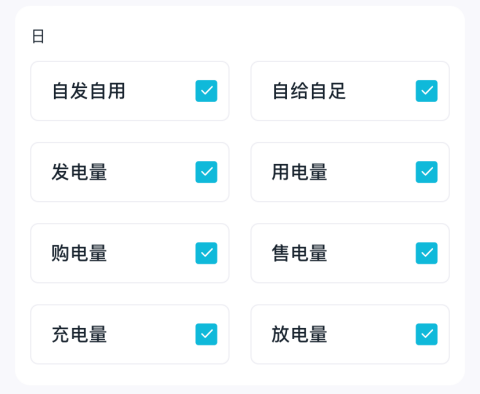 | 自给自足 | (来自发电的用电量 + 来自电池放电的用电量) / 用电量,衡量家庭用电中自产能源的占比。 |