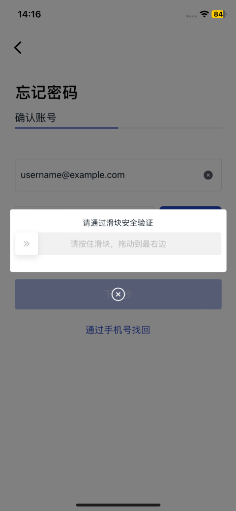 拖动滑块验证邮箱/手机号;