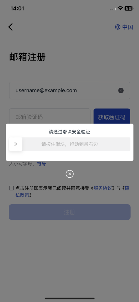 拖动滑块验证邮箱。