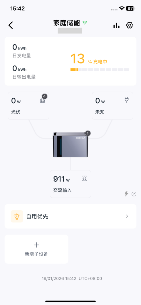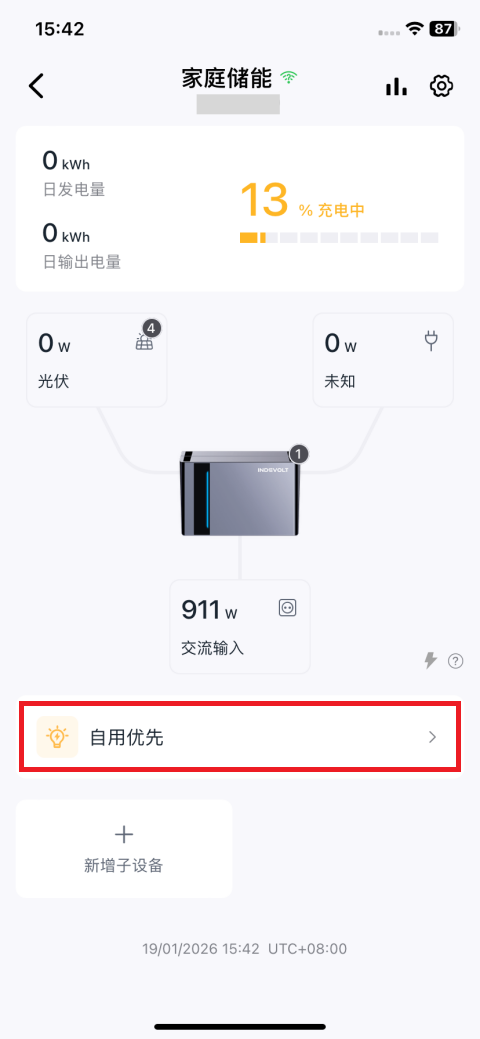 - 确认您已在 INDEVOLT App 添加设备至您的家庭