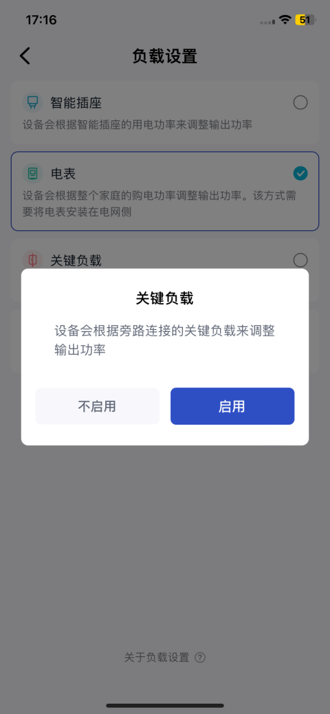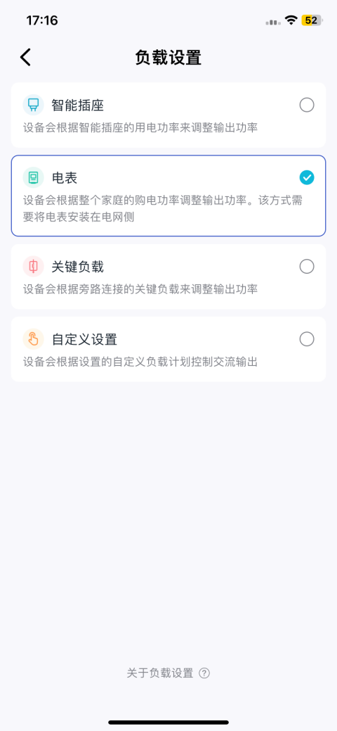 - 根据实际情况选择负载类型(智能插座 / 智能电表 / 关键负载 / 自定义设置)