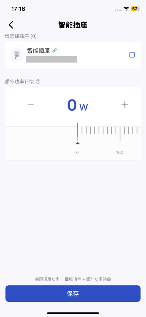 - 实际调度功率 = 插座负载功率 + 额外功率补偿