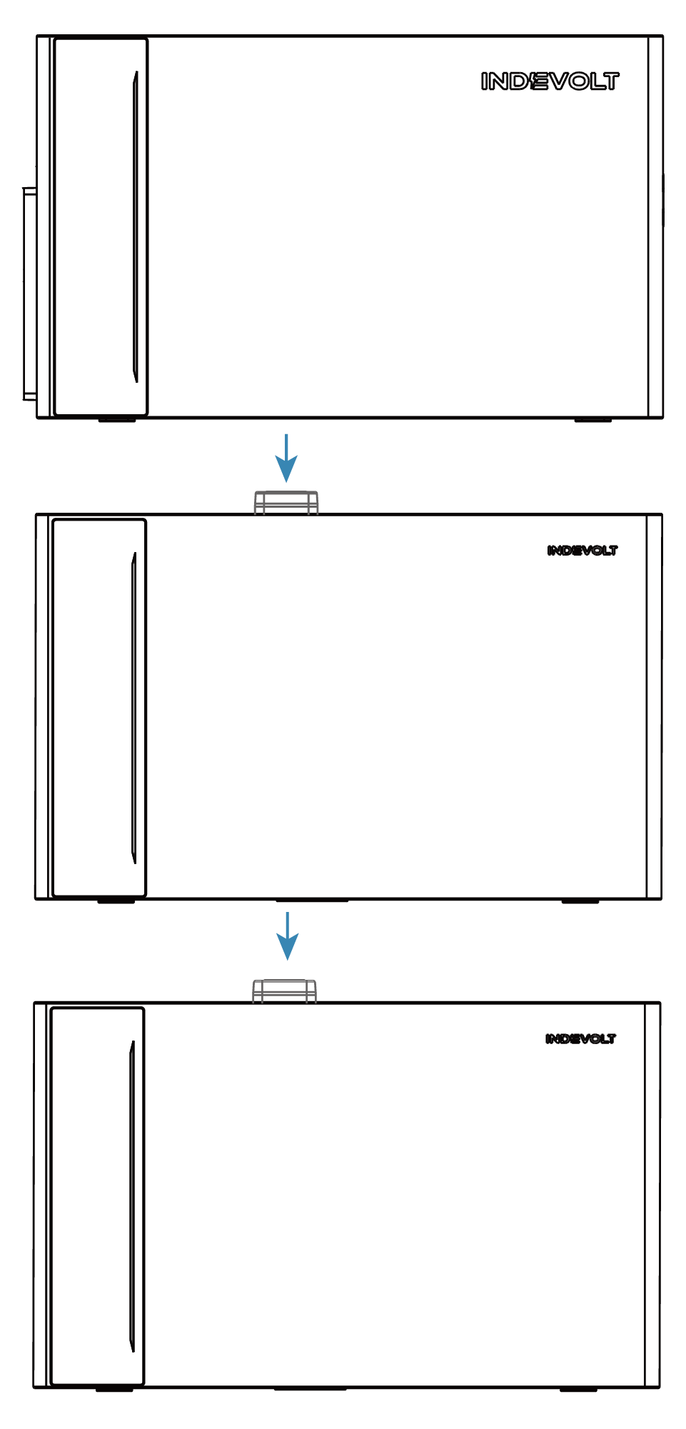 将扩展电池模块对准对应接口,逐个向上叠放,并将电源模块安装在最上方。